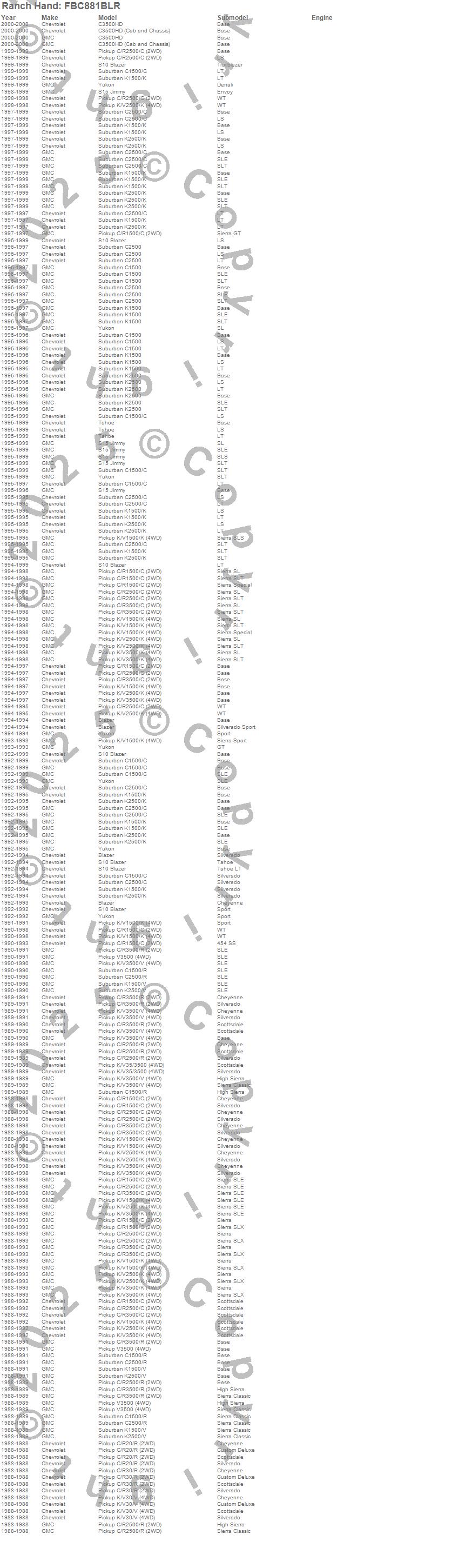 Below is an abbreviated list of applications for the Legend Series Front Bumper.Blazer, C1500 Pickup, C1500 Suburban, C2500 Pickup, C2500 Suburban, C3500 Pickup, C3500HD, K1500, K1500 Pickup, K1500 Suburban, K2500 Pickup, K2500 Suburban, K3500 Pickup, R1500 Suburban, R20 Pickup, R2500 Pickup, R2500 Suburban, R30 Pickup, R3500 Pickup, S10 Blazer