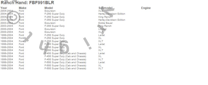 Below is an abbreviated list of applications for the Legend Series Front Bumper.Excursion, F-250 Super Duty, F-350 Super Duty, F-450 Super Duty, F-550 Super Duty, Ford, 2004, 2003, 2002, 2001, 2000, 1999