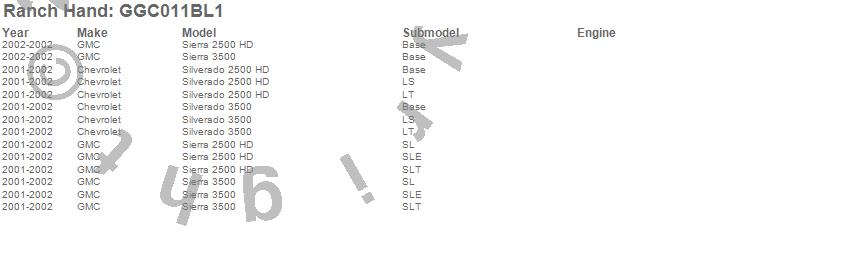 Below is an abbreviated list of applications for the Legend Series Grille Guard.Sierra 2500 HD, Sierra 3500, Silverado 2500 HD, Silverado 3500, Chevrolet, GMC, 2002, 2001
