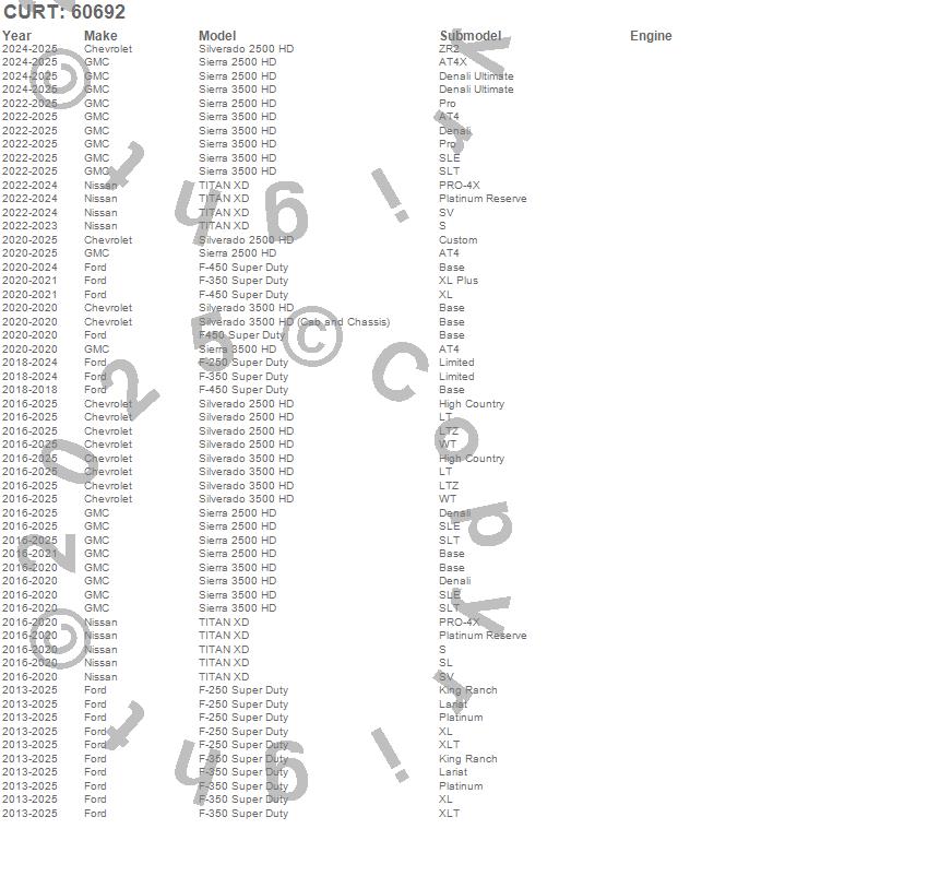 Brand: CURTPart Number: 60692Tie Down Anchor Type: OEM Compatible For GM - Incl. Gooseneck BallUPC: 612314606924