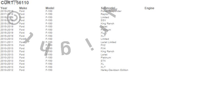 Below is an abbreviated list of applications for the Vehicle To Trailer Connector w/Harness.F-150, Ford, 2017, 2016, 2015, 2013, 2012, 2011