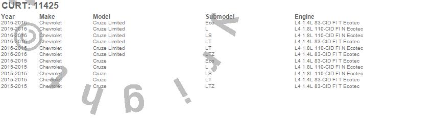 Below is an abbreviated list of applications for the Class I 1.25 in. Receiver Hitch.Cruze, Cruze Limited, Chevrolet, 2016, 2015