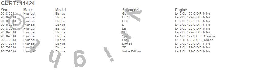 Below is an abbreviated list of applications for the Class I 1.25 in. Receiver Hitch.Elantra, Hyundai, 2018, 2017