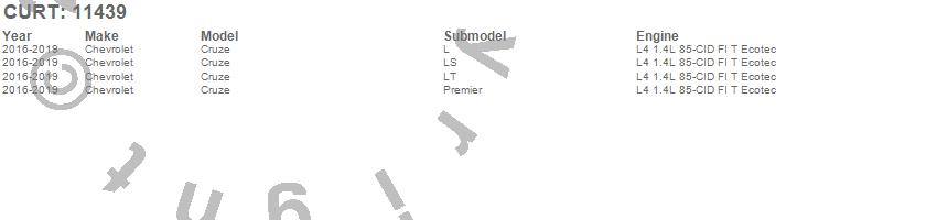 Brand: CURTPart Number: 11439Trailer Hitch Type: Rear - 2000lbs. Gross Trailer Weight - 200lbs. Tongue WeightUPC: 612314114399
