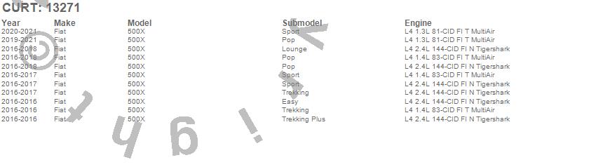 Below is an abbreviated list of applications for the Class III 2 in. Receiver Hitch.500X, Fiat, 2021, 2020, 2019, 2018, 2017, 2016