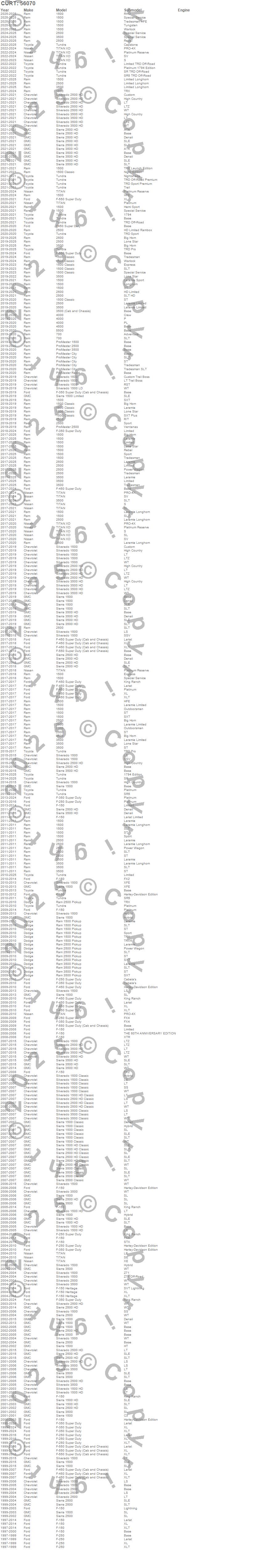 Below is an abbreviated list of applications for the Custom Wiring Harness Extension.1500, 1500 Classic, 2500, 3500, F-150, F-150 Heritage, F-250, F-250 Super Duty, F-350 Super Duty, F-450 Super Duty, F-550 Super Duty, F450 Super Duty, Ram 1500, Ram 2500, Ram 3500, Sierra 1500, Sierra 1500 Classic, Sierra 1500 HD, Sierra 1500 HD Classic, Sierra 1500 Limited
