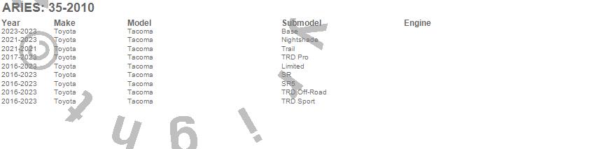 Below is an abbreviated list of applications for the Bull Bar.Tacoma, Toyota, 2023, 2022, 2021, 2020, 2019, 2018, 2017, 2016