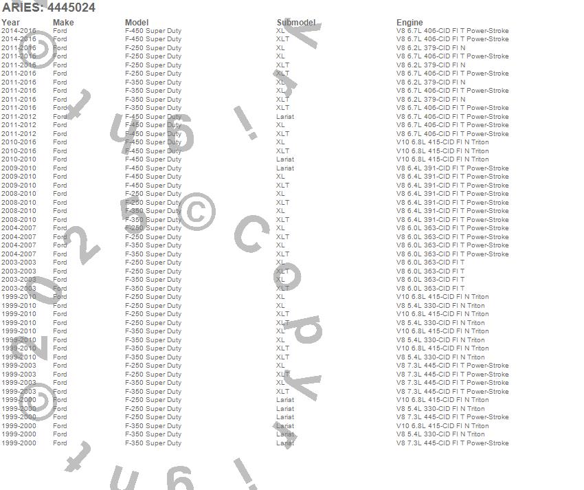 Below is an abbreviated list of applications for the The Standard 6 in. Oval Nerf Bar w/Mounting Brackets.F-250 Super Duty, F-350 Super Duty, F-450 Super Duty, Ford, 2016, 2015, 2014, 2013, 2012, 2011, 2010, 2009, 2008, 2007, 2006, 2005, 2004, 2003, 2002, 2001