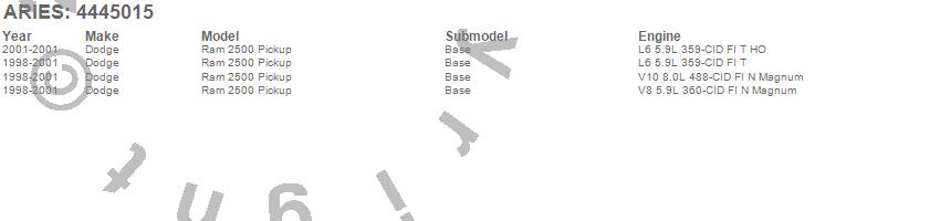 Below is an abbreviated list of applications for the The Standard 6 in. Oval Nerf Bar w/Mounting Brackets.Ram 2500, Dodge, 2001, 2000, 1999, 1998