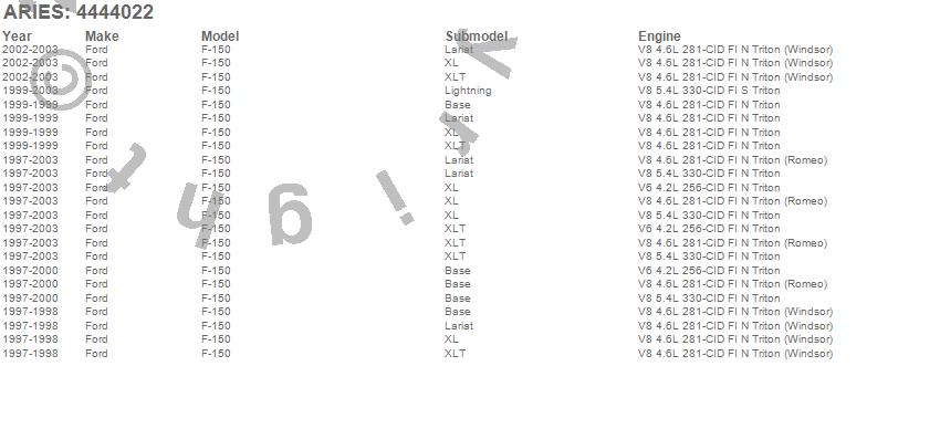 Below is an abbreviated list of applications for the The Standard 6 in. Oval Nerf Bar w/Mounting Brackets.F-150, Ford, 2003, 2002, 2001, 2000, 1999, 1998, 1997
