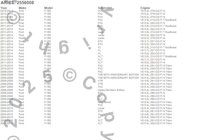 Below is an abbreviated list of applications for the AdvantEDGE Side Bars w/Mounting Brackets.F-150, Ford, 2014, 2013, 2012, 2011, 2010, 2009, 2008, 2007, 2006, 2005, 2004