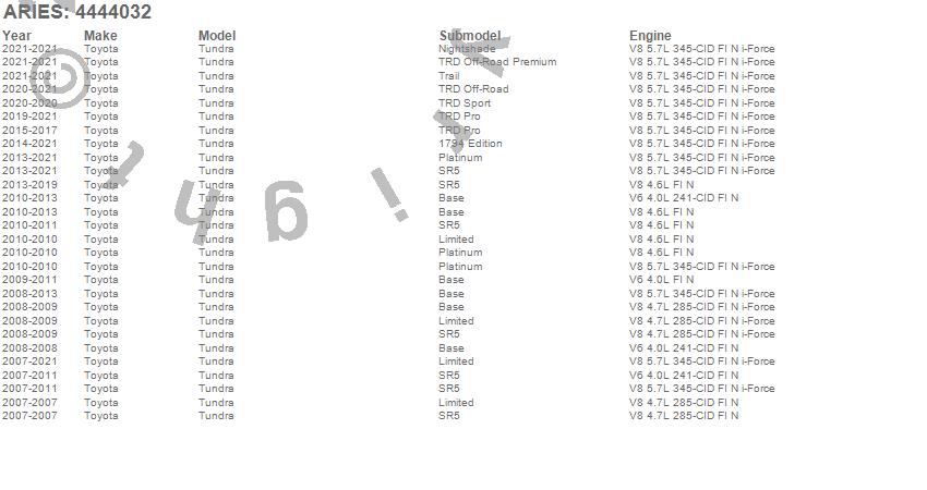 Below is an abbreviated list of applications for the The Standard 6 in. Oval Nerf Bar w/Mounting Brackets.Tundra, Toyota, 2021, 2020, 2019, 2018, 2017, 2016, 2015, 2014, 2013, 2012, 2011, 2010, 2009, 2008, 2007