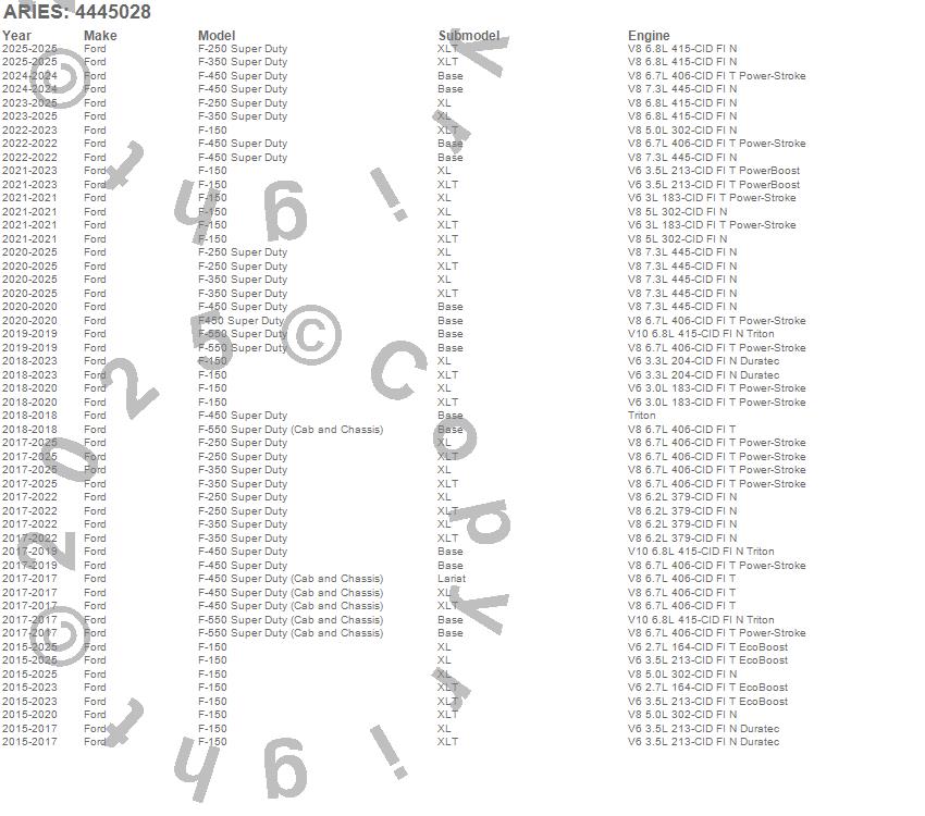 Below is an abbreviated list of applications for the The Standard 6 in. Oval Nerf Bar w/Mounting Brackets.F-150, F-250 Super Duty, F-350 Super Duty, F-450 Super Duty, F-550 Super Duty, F450 Super Duty, Ford, 2026, 2025, 2024, 2023, 2022, 2021, 2020, 2019, 2018, 2017, 2016, 2015