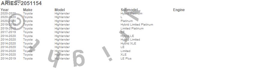 Below is an abbreviated list of applications for the AeroTread Mounting Brackets.Highlander, Toyota, 2020, 2019, 2018, 2017, 2016, 2015, 2014