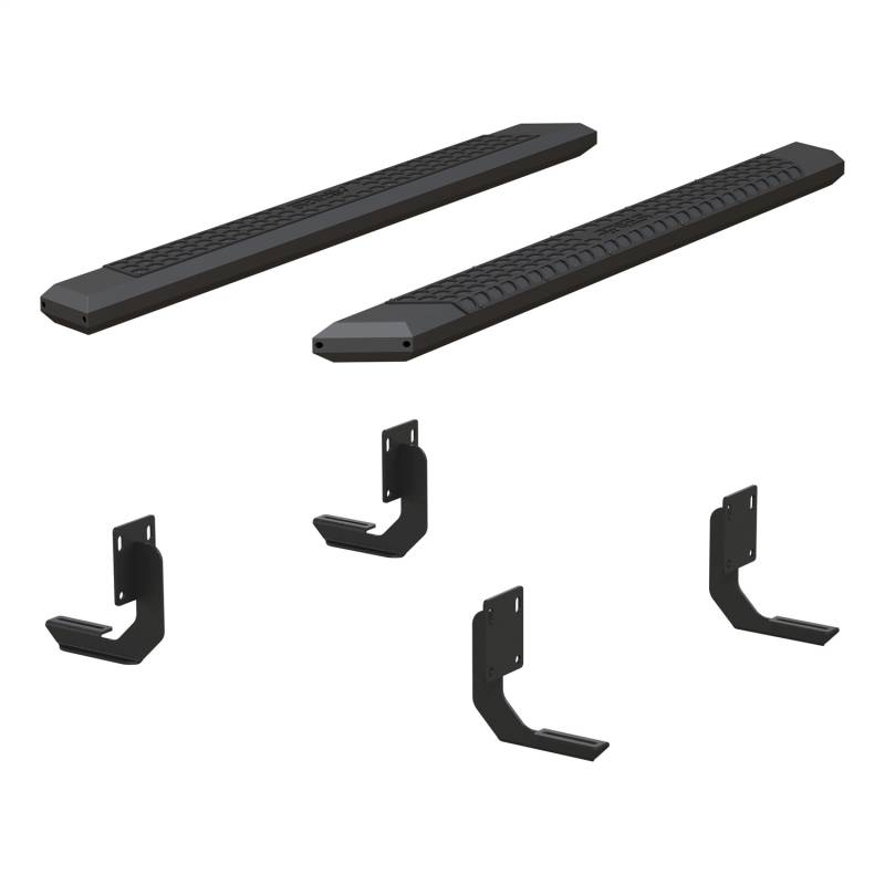 Brand: ARIESPart Number: 2556014Nerf/Step Bar Type: 5.5 in. - Incl. Side Bars PN[2055975] - VersaTrac Brackets PN[2055123] - Carbide Black Powder Coat AluminumUPC: 849055003624