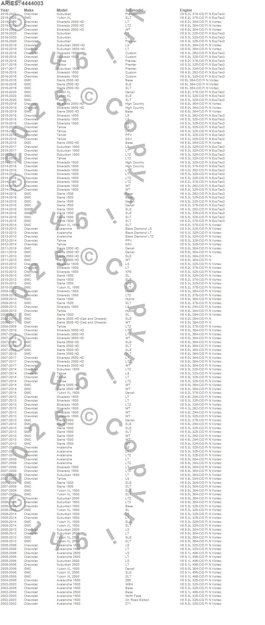 Below is an abbreviated list of applications for the The Standard 6 in. Oval Nerf Bar w/Mounting Brackets.Avalanche, Avalanche 1500, Avalanche 2500, Sierra 1500, Sierra 2500 HD, Sierra 3500 HD, Silverado 1500, Silverado 2500 HD, Silverado 3500 HD, Suburban, Suburban 1500, Suburban 2500, Suburban 3500 HD, Tahoe, Yukon XL, Yukon XL 1500, Yukon XL 2500, Chevrolet, GMC, 2020