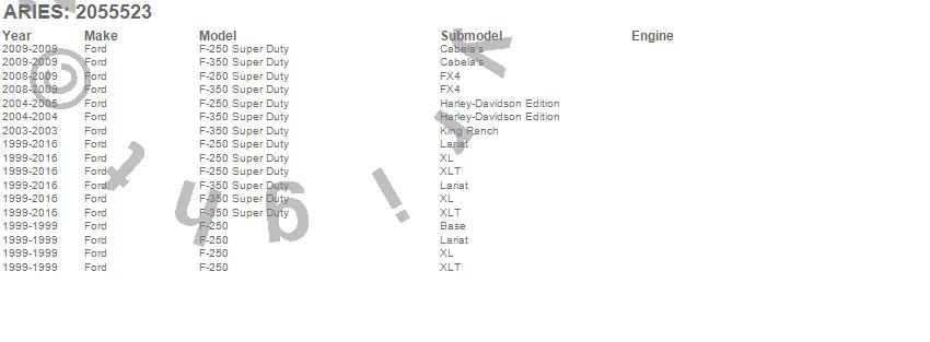Below is an abbreviated list of applications for the RidgeStep Commercial Running Boards w/Mounting Brackets.F-250, F-250 Super Duty, F-350 Super Duty, Ford, 2016, 2015, 2014, 2013, 2012, 2011, 2010, 2009, 2008, 2007, 2006, 2005, 2004, 2003, 2002, 2001