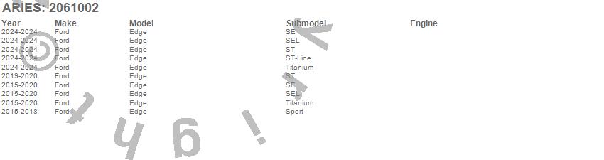 Below is an abbreviated list of applications for the AeroTread Running Boards w/Mounting Brackets.Edge, Ford, 2024, 2020, 2019, 2018, 2017, 2016, 2015