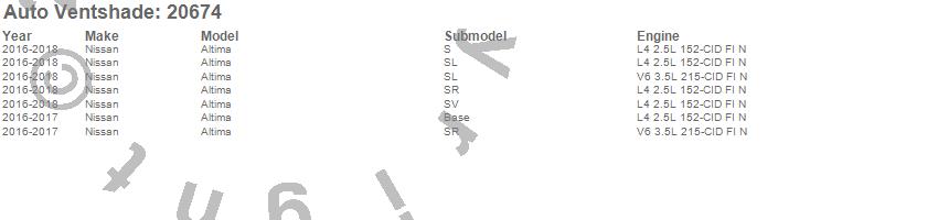 Below is an abbreviated list of applications for the Carflector Stone/Bug Deflector.Altima, Nissan, 2018, 2017, 2016