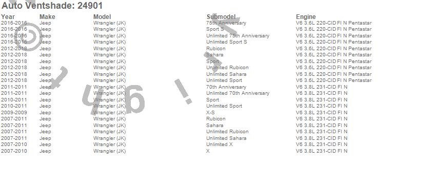 Below is an abbreviated list of applications for the Bugflector II Stone/Bug Deflector.Wrangler (JK), Jeep, 2018, 2017, 2016, 2015, 2014, 2013, 2012, 2011, 2010, 2009, 2008, 2007