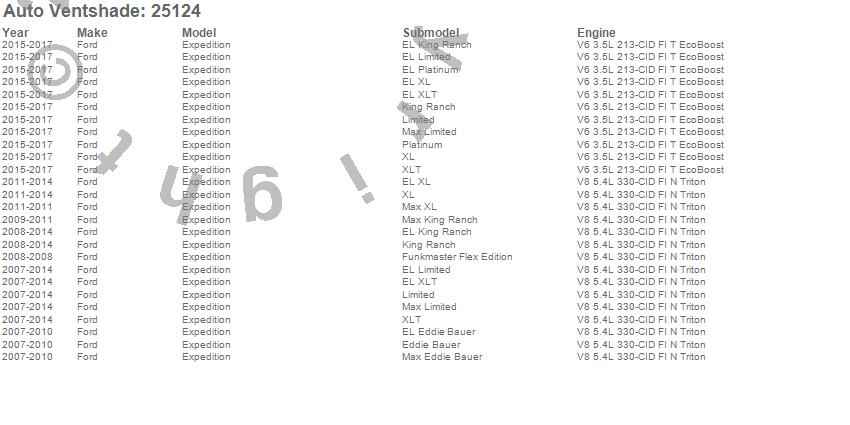 Below is an abbreviated list of applications for the Bugflector II Stone/Bug Deflector.Expedition, Ford, 2017, 2016, 2015, 2014, 2013, 2012, 2011, 2010, 2009, 2008, 2007