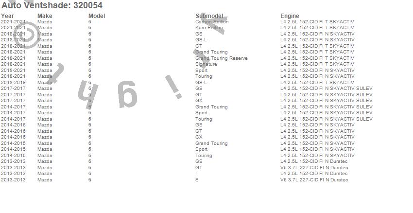 Below is an abbreviated list of applications for the Aeroskin Smoke Hood Protector.6, Mazda, 2021, 2020, 2019, 2018, 2017, 2016, 2015, 2014, 2013