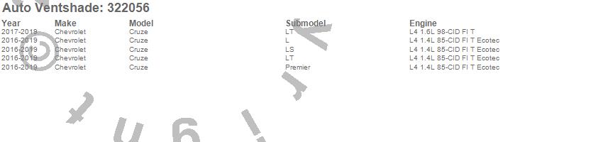 Below is an abbreviated list of applications for the Aeroskin Smoke Hood Protector.Cruze, Chevrolet, 2019, 2018, 2017, 2016