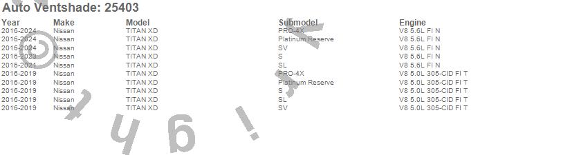 Below is an abbreviated list of applications for the Bugflector II Stone/Bug Deflector.TITAN XD, Nissan, 2024, 2023, 2022, 2021, 2020, 2019, 2018, 2017, 2016