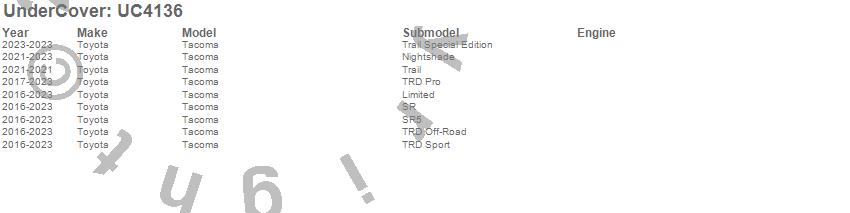 Brand: UnderCoverPart Number: UC4136Tonneau Cover Type: Black TexturedUPC: 815138028549