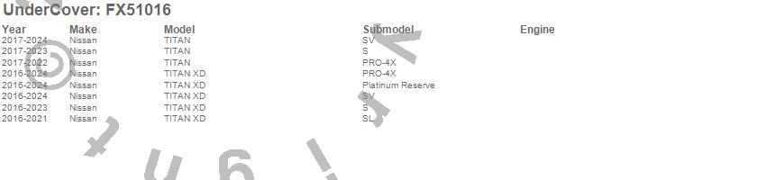 Below is an abbreviated list of applications for the FLEX Tonneau Cover.TITAN, TITAN XD, Nissan, 2024, 2023, 2022, 2021, 2020, 2019, 2018, 2017, 2016