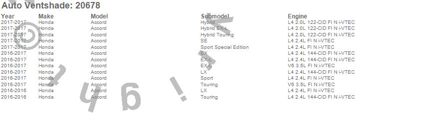 Below is an abbreviated list of applications for the Carflector Stone/Bug Deflector.Accord, Honda, 2017, 2016