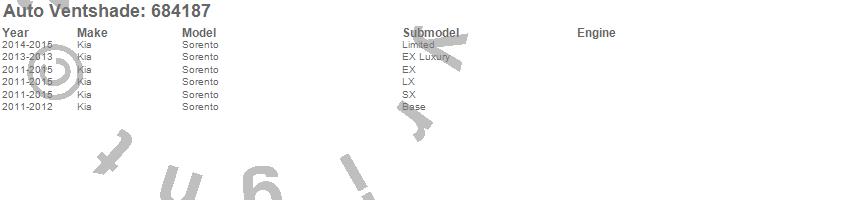 Below is an abbreviated list of applications for the Chrome Ventvisor Deflector 4 pc..Sorento, Kia, 2015, 2014, 2013, 2012, 2011