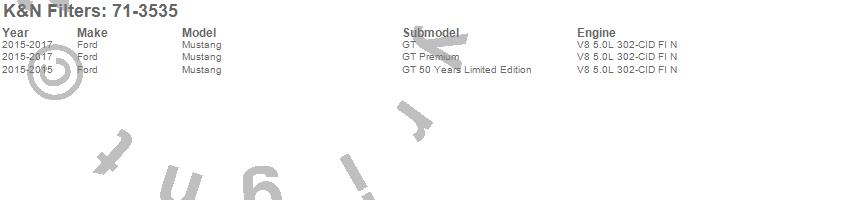 Brand: K&N FiltersPart Number: 71-3535Air Intake Kit Type: Incl. Air Filter/Heat Shield/Tubing - Estimated Horsepower Gain 18.68 HP At 5216 RPMUPC: 024844362612