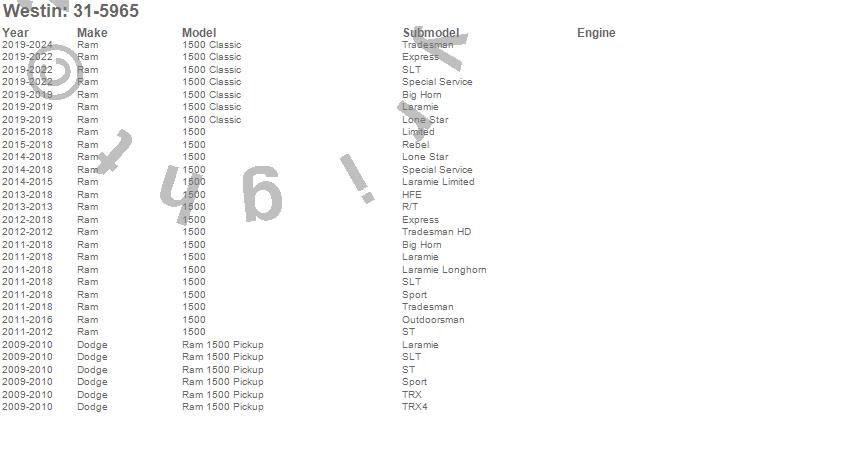 Brand: WestinPart Number: 31-5965Bull Bar Type: 3 in. Dia. - Black Powder Coated SteelUPC: 707742071083