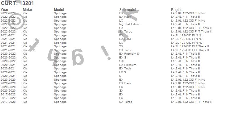 Below is an abbreviated list of applications for the Class III 2 in. Receiver Hitch.Sportage, Kia, 2022, 2021, 2020, 2019, 2018, 2017