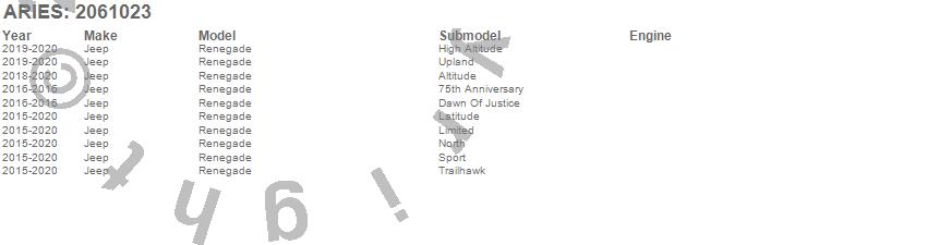 Below is an abbreviated list of applications for the AeroTread Running Boards w/Mounting Brackets.Renegade, Jeep, 2020, 2019, 2018, 2017, 2016, 2015