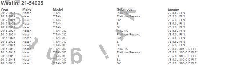 Below is an abbreviated list of applications for the PRO TRAXX 5 Oval Nerf Step Bars.TITAN, TITAN XD, Nissan, 2024, 2023, 2022, 2021, 2020, 2019, 2018, 2017, 2016