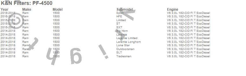 Below is an abbreviated list of applications for the In-Line Gas Filter.1500, Ram, 2017, 2016, 2015, 2014