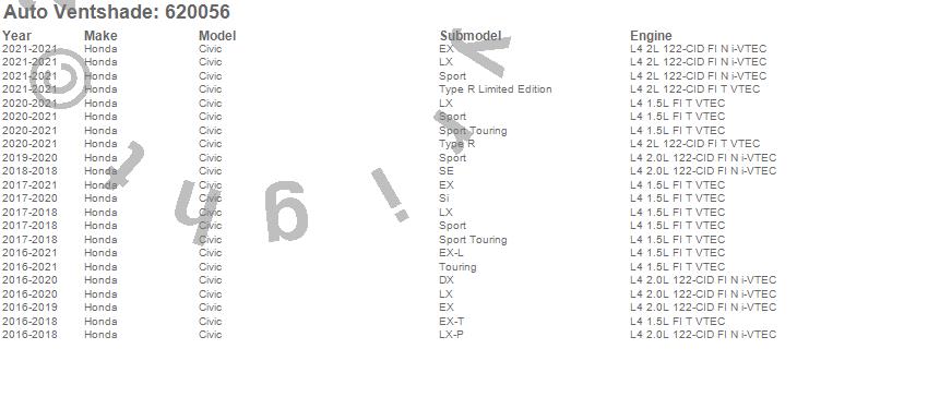 Below is an abbreviated list of applications for the Aeroskin Chrome Hood Protector.Civic, Honda, 2021, 2020, 2019, 2018, 2017, 2016