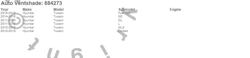 Below is an abbreviated list of applications for the Chrome Ventvisor Deflector 4 pc..Tucson, Hyundai, 2015, 2014, 2013, 2012, 2011, 2010