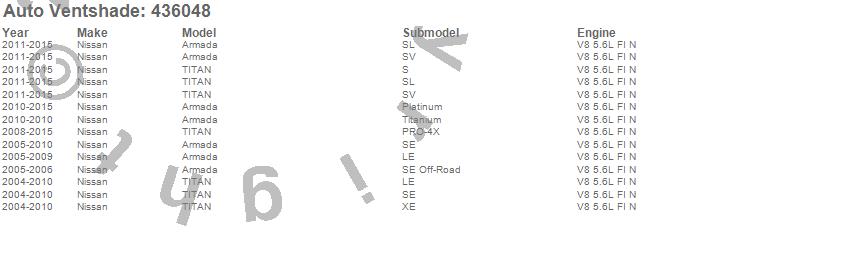 Below is an abbreviated list of applications for the Aeroskin II Hood Protector Textured Black.Armada, TITAN, Nissan, 2015, 2014, 2013, 2012, 2011, 2010, 2009, 2008, 2007, 2006, 2005, 2004