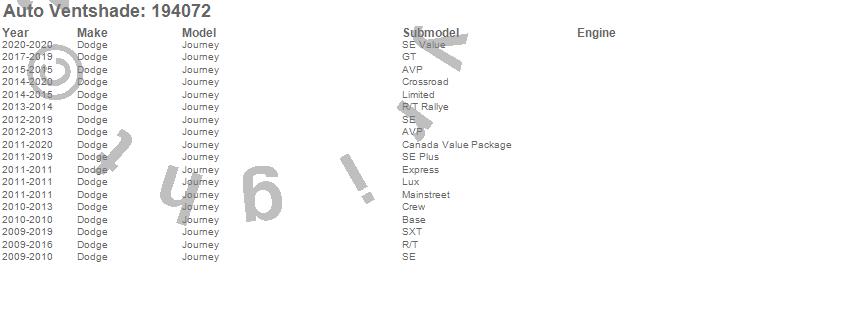 Below is an abbreviated list of applications for the Ventvisor In-Channel Deflector 4 pc..Journey, Dodge, 2020, 2019, 2018, 2017, 2016, 2015, 2014, 2013, 2012, 2011, 2010, 2009