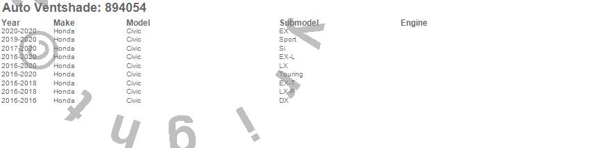 Below is an abbreviated list of applications for the Ventvisor Low Profile Deflector 4 pc..Civic, Honda, 2020, 2019, 2018, 2017, 2016