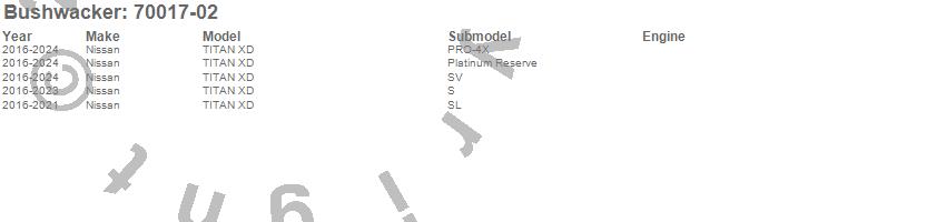 Below is an abbreviated list of applications for the OE Style Fender Flares.TITAN XD, Nissan, 2024, 2023, 2022, 2021, 2020, 2019, 2018, 2017, 2016