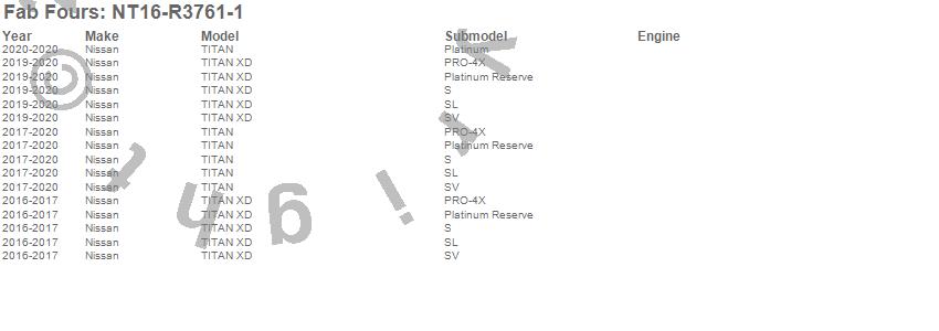 Below is an abbreviated list of applications for the Elite Front Bumper.TITAN, TITAN XD, Nissan, 2020, 2019, 2018, 2017, 2016