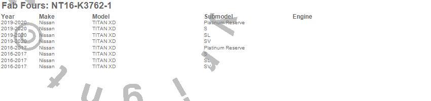 Below is an abbreviated list of applications for the Black Steel Front Bumper.TITAN XD, Nissan, 2020, 2019, 2017, 2016