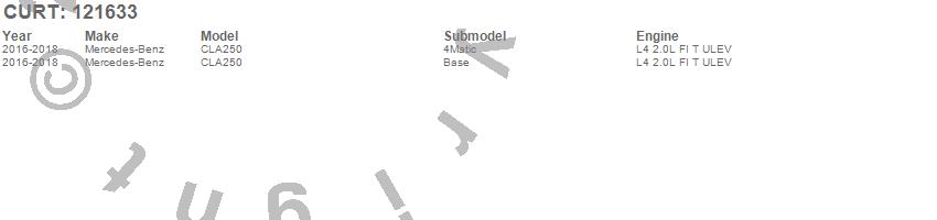 Below is an abbreviated list of applications for the Class II 1.25 in. Receiver Hitch.CLA250, Mercedes-Benz, 2018, 2017, 2016
