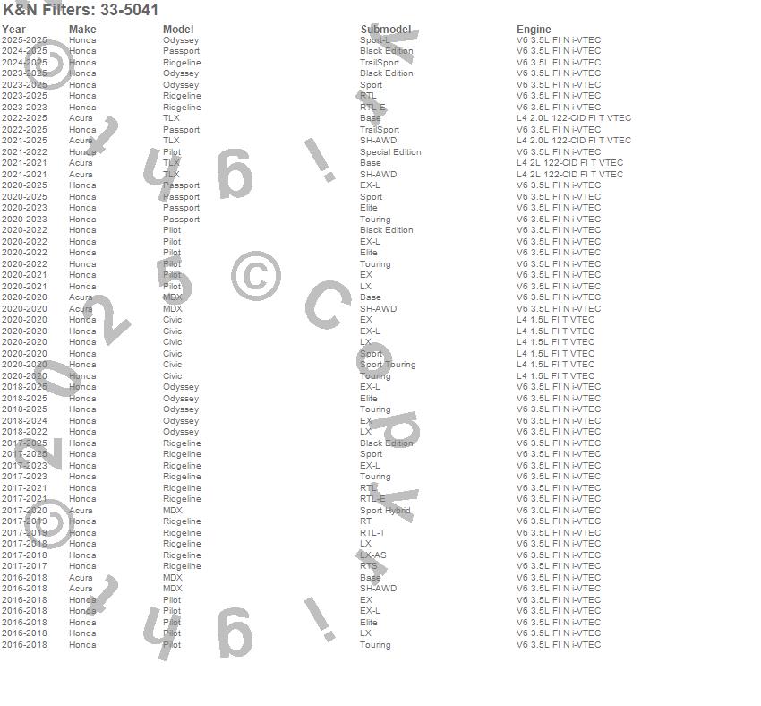 Below is an abbreviated list of applications for the Air Filter.MDX, Odyssey, Pilot, Ridgeline, Acura, Honda, 2020, 2019, 2018, 2017, 2016
