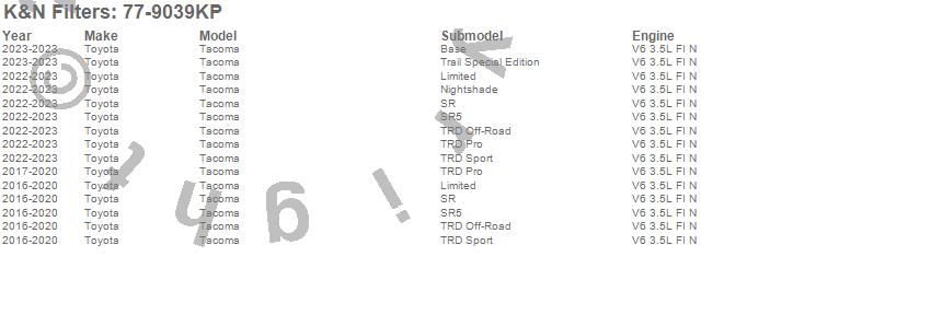 Below is an abbreviated list of applications for the Performance Induction Kit.Tacoma, Toyota, 2019, 2018, 2017, 2016