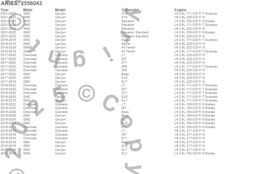 Below is an abbreviated list of applications for the AdvantEDGE Side Bars w/Mounting Brackets.Canyon, Colorado, Chevrolet, GMC, 2022, 2021, 2020, 2019, 2018, 2017, 2016, 2015
